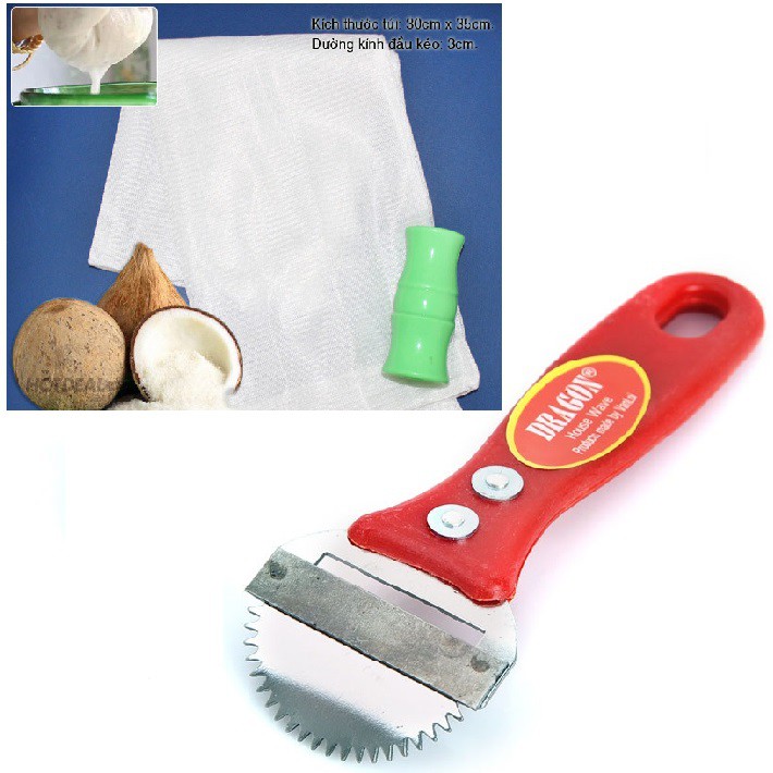 Combo Dụng Bào Dừa + Túi Lọc Đa Năng