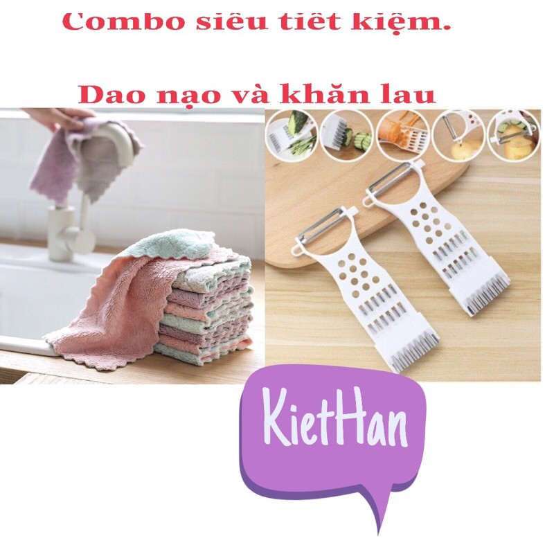 Combo Dụng cụ bào gọt vỏ rau củ va khăn lau đa năngSản phẩm dao bào gọt rau củ quả đa năng là sự lựa chọn tuyệt vời cho các bà nội trợ và đầu bếp.