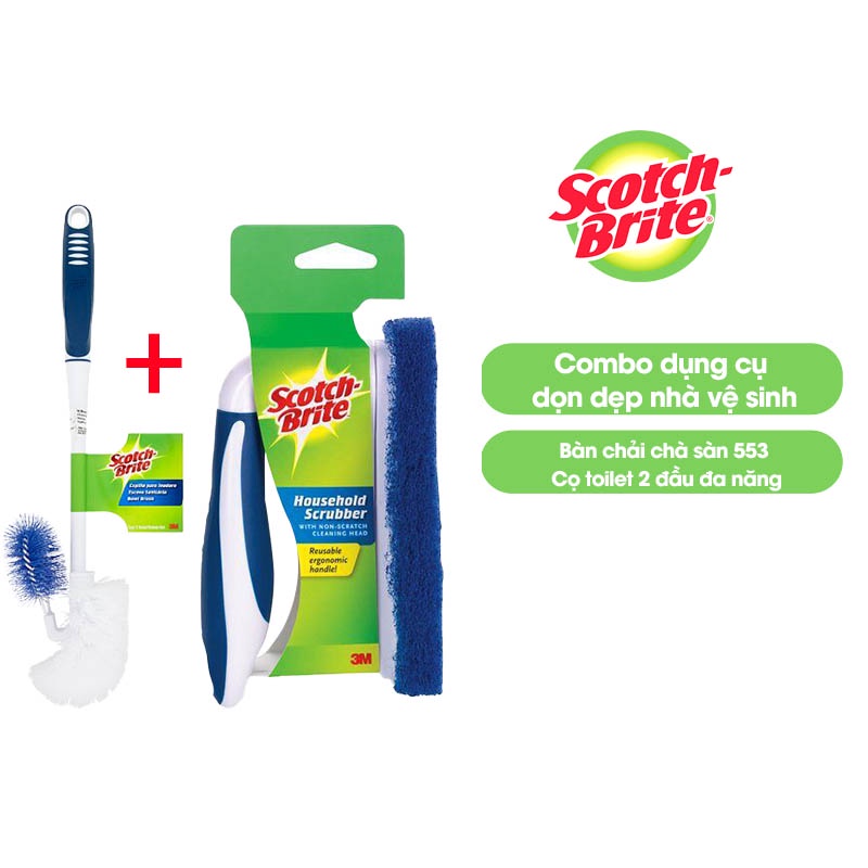Nhà cửa & Đời sống > Dụng cụ chăm sóc nhà cửa > Bàn chải vệ sinh || Combo dụng cụ dọn dẹp nhà vệ sinh cao cấp Scotch Brite - Bàn chải chà sàn không trầy xước + Cọ toilet 2 đầu đa năngCòn hàng