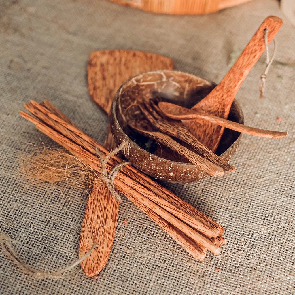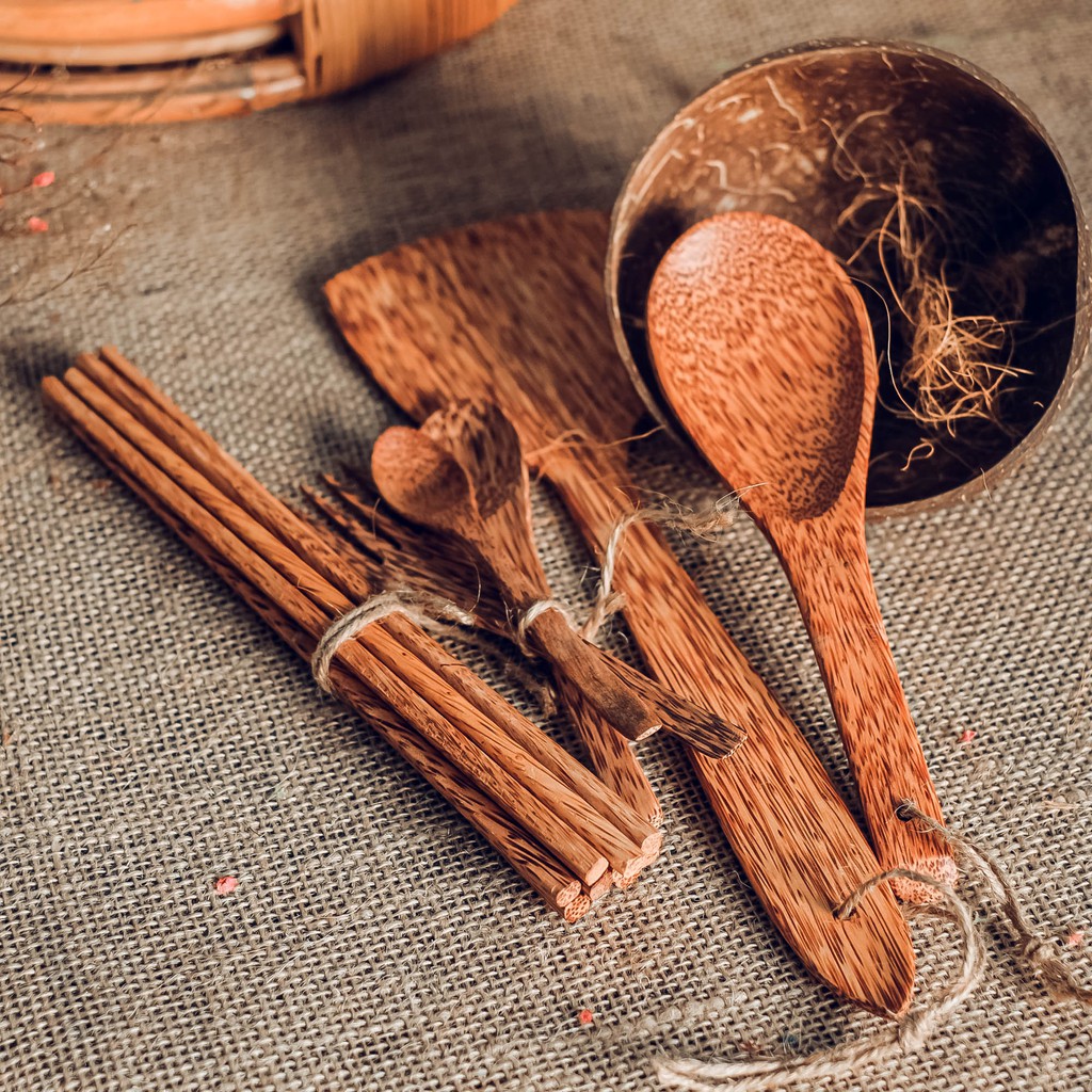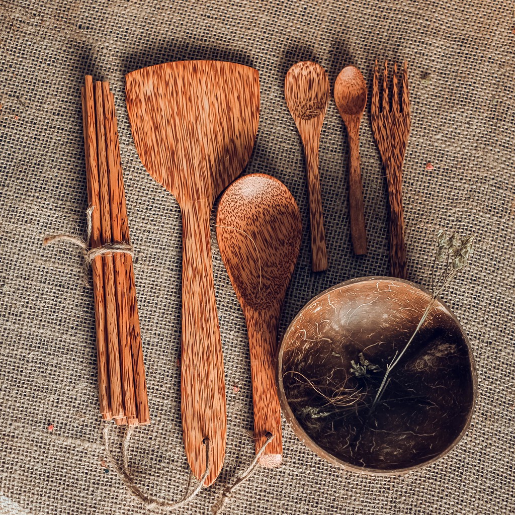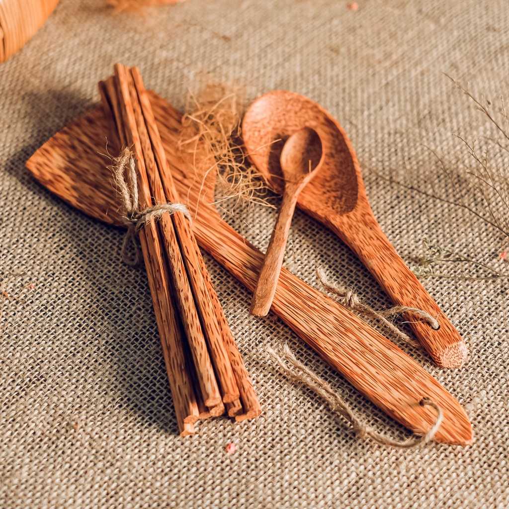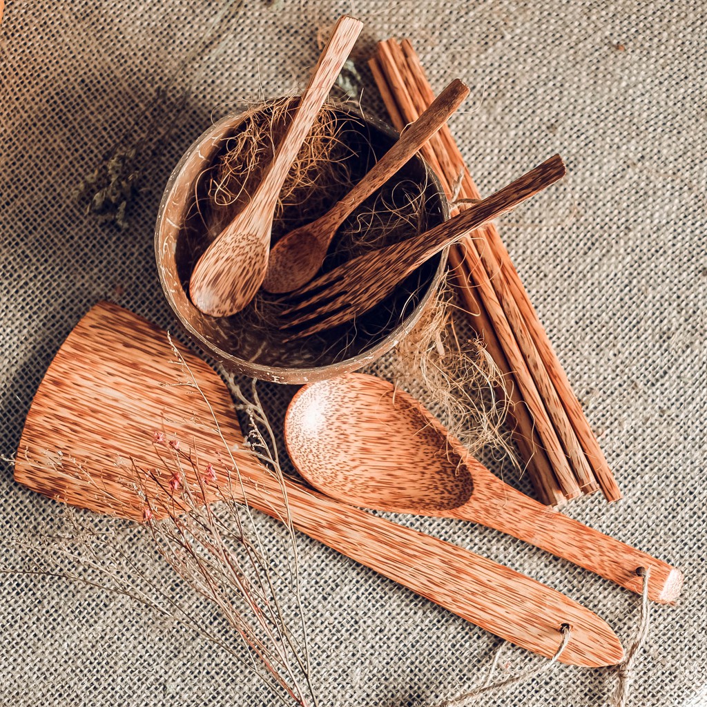 [Combo dụng cụ nhà bếp bằng gỗ dừa] 1 chén/ 2 muỗng/ 1 nĩa/ 4 đôi đũa/ 1 vá cơm/ 1 sạn xào