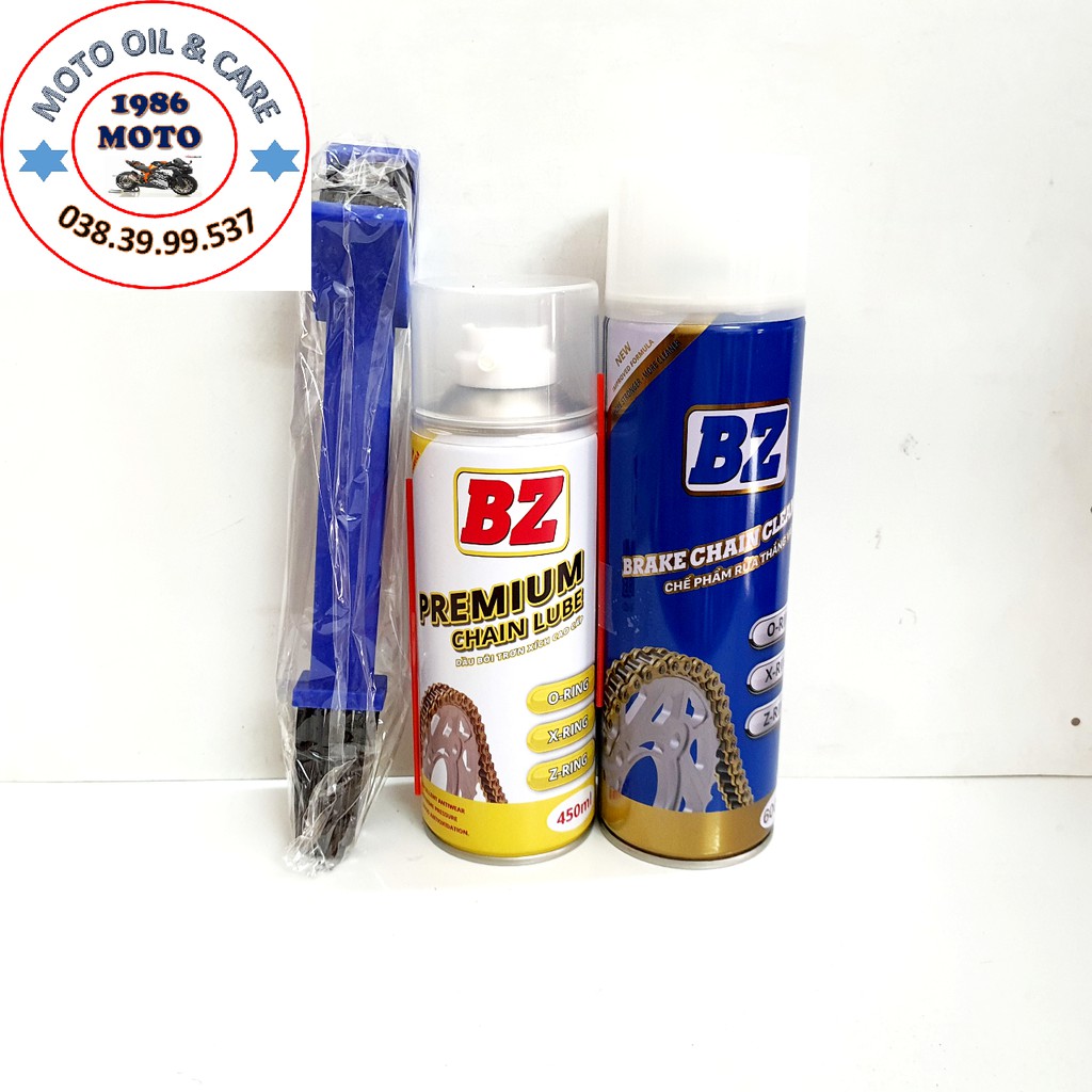 COMBO DƯỠNG SÊN BZ PREMIUM 450ML+ RỬA SÊN 600ML TẶNG BÀN CHẢICHAI XỊT RỬA SÊN VÀ BỐ THẮNG BZ BRAKE CHAIN CLEANER 600ML