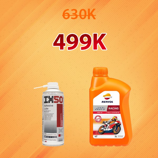 Combo dưỡng sên nhập khẩu cao cấp Voltronic IX50 và Nhớt nhập khẩu Repsol Racing 10w40