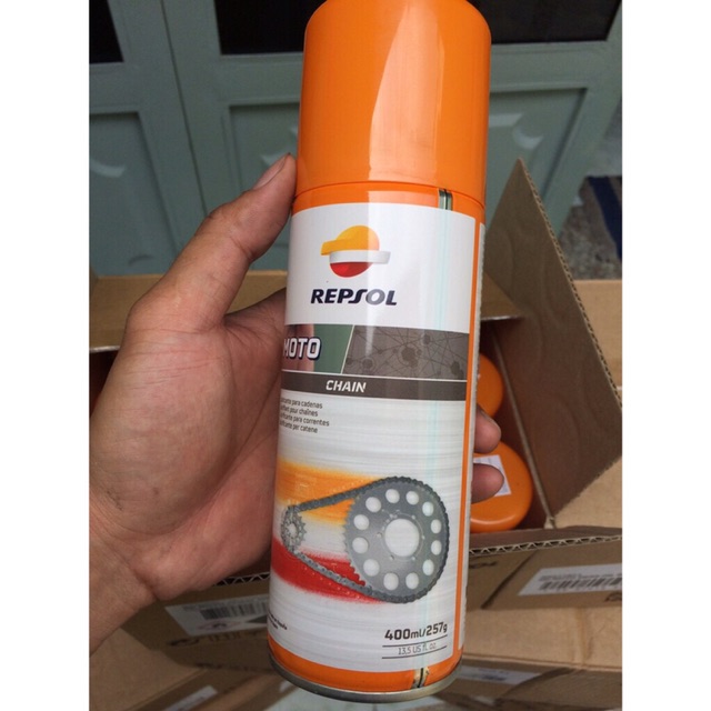 - Chai xịt sên Repsol Moto Lube Chain mang lại sự bảo vệ và vận hành tối ưu, giúp kéo dài tuổi thọ cho sên xe của bạn. Sản phẩm giúp giảm tiếng ồn, giúp sên trần khó bị bám bụi, bảo vệ ron cao su trên sên xích.