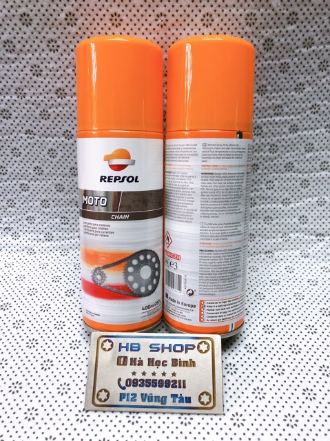 Thông tin sản phẩm: xịt dưỡng sên của tập đoàn Repsol Tây Ban Nha,sản xuất tại Tây Ban Nha,dạng khí-lỏng.
