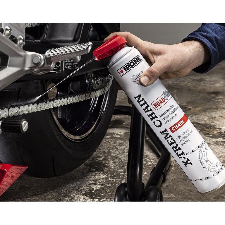 Chai bôi trơn IPONE X-TREM CHAIN ROAD là loại mỡ xích bám dính tối ưu dành cho xe mô tô đường trường ,không văng, trong điều kiện khắc nghiệt
