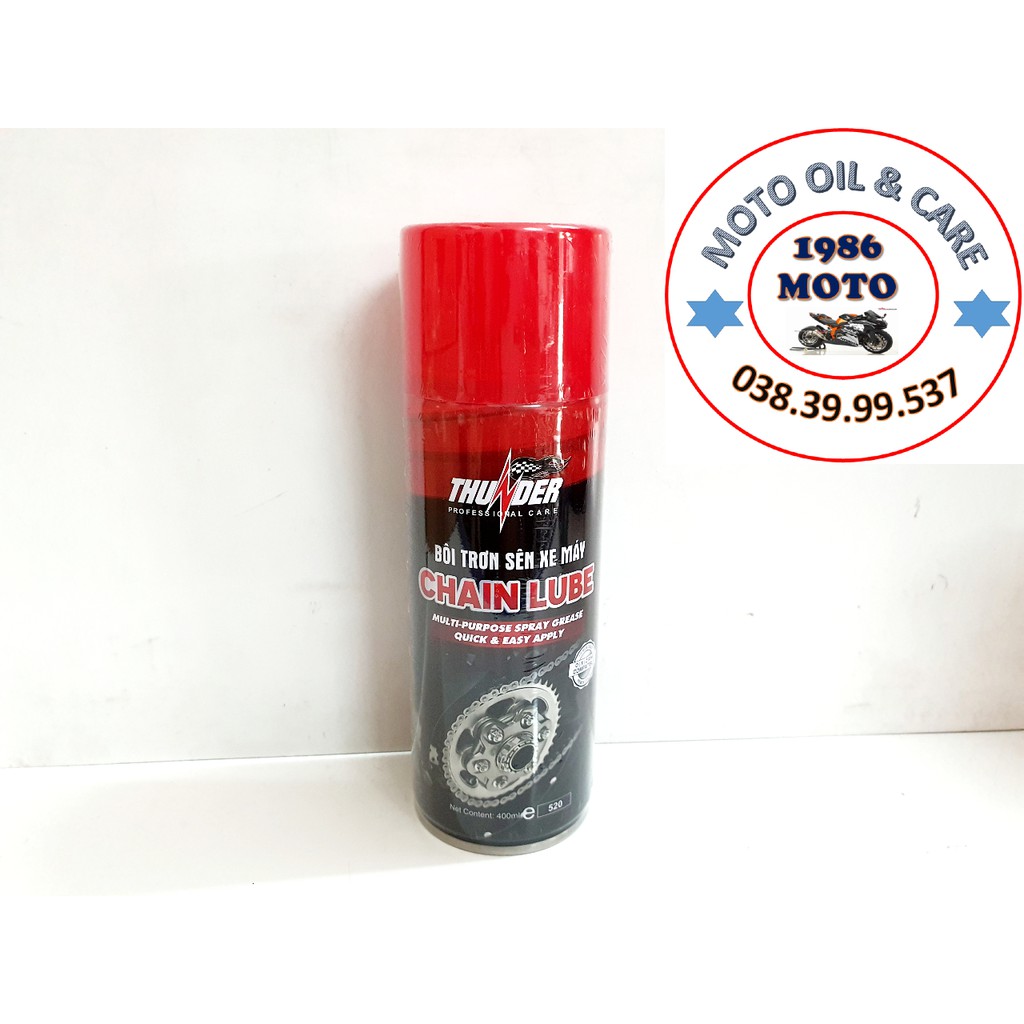 Bộ sản phẩm vệ sinh sên MC-40 400ml, Bôi trơn dưỡng sên Thunder 400ml và bàn chải sên chuyên nghiệpSản phẩm bôi trơn sên xe máy với thành phần dầu gốc cao cấp và các chất phụ gia đặc biệt nhập khẩu từ Nhật giúp sên hoạt động êm ái, tránh những tiếng kêu xè xè đối với các loại sên trần qua đó gia tăng độ bền của sên, hạn chế vấn đề co giãn sên khi vận hành.