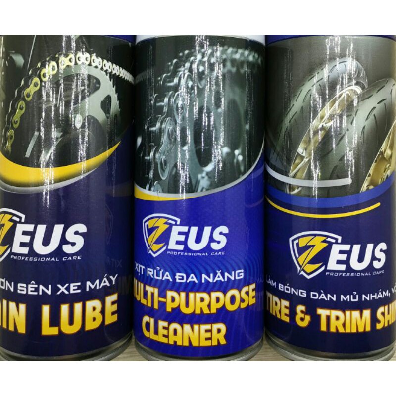 Ô tô > Dầu nhớt và phụ gia ô tô > Mỡ & Chất bôi trơn || COMBO Dưỡng Sên ZEUS, Vệ Sinh Sên ZEUS và Bóng Vỏ Dàn Mủ Nhựa ZEUSCòn hàng
