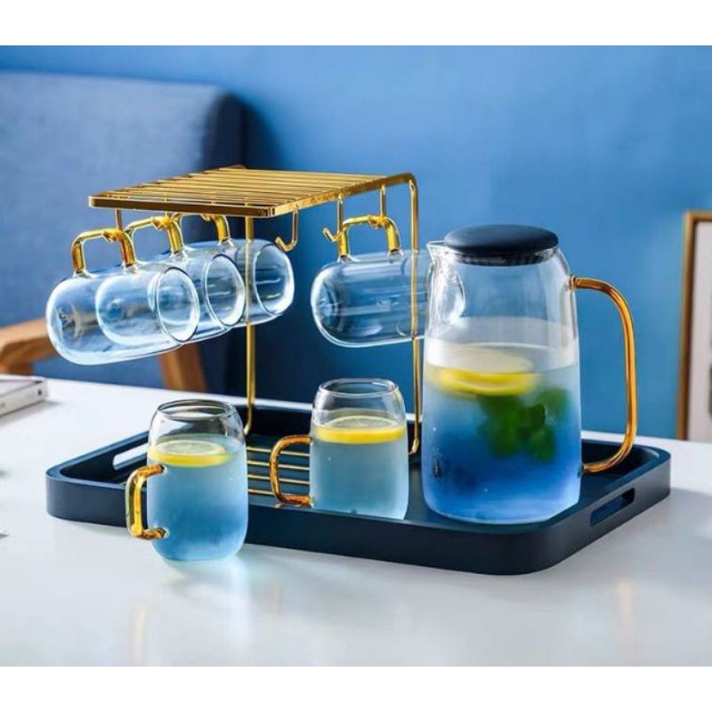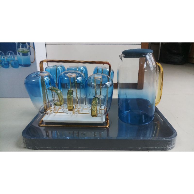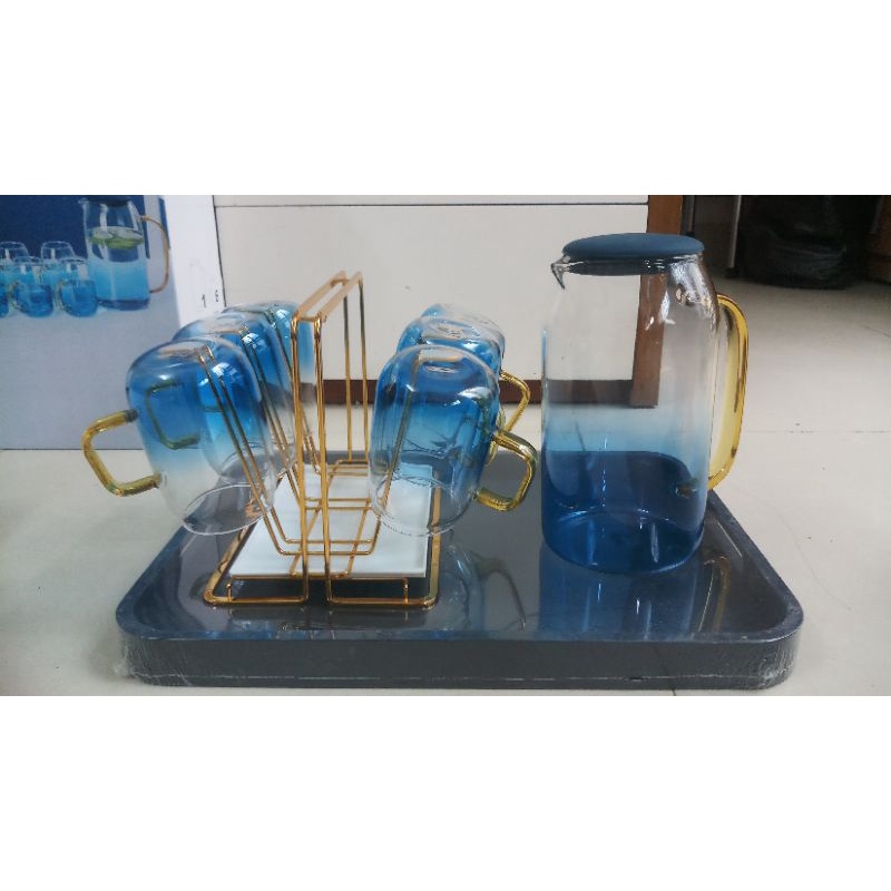 Nhà cửa & Đời sống > Bộ đồ bàn ăn > Bình nước & phụ kiện || Combo Full bộ bình thủy tinh Đại Dương xanh ( bao gồm khay, giá cốc)Còn hàng