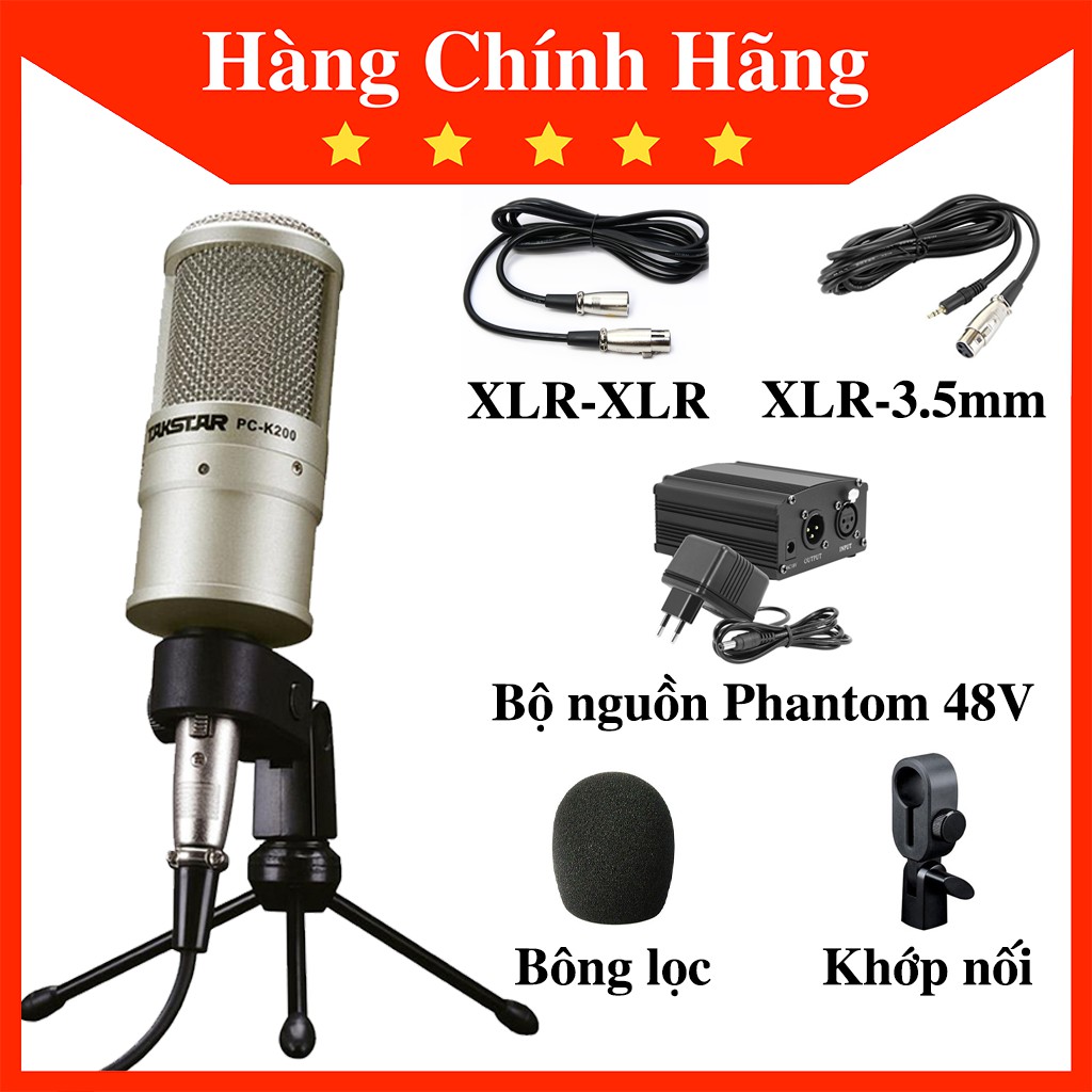 TAKSTAR PC-K200 - Dòng micro thu âm, livestream cực "HAY" + cực " HOT" - giá bình dân🌐 Combo này gồm Micro Takstar PC-K200 + Nguồn Phantom 48V + dây XLR-XLR + dây XLR-3.5mm + khớp nối + bông lọc micro