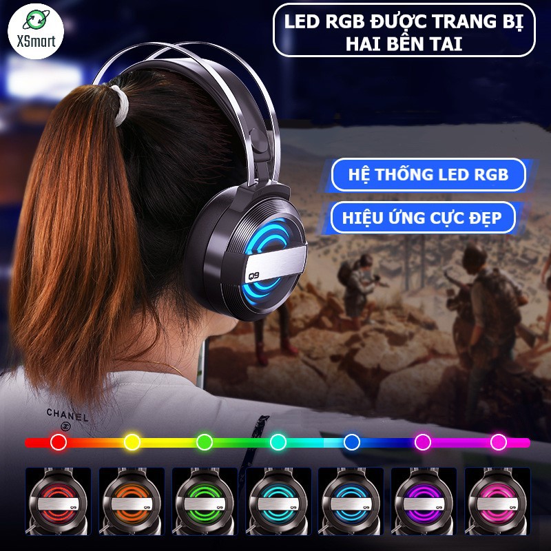COMBO Gaming Bàn phím và chuột kèm tai nghe chụp tai headphone super bass, phím LED 10 chế độ, K618+V5 tia sét + Q9 7.1