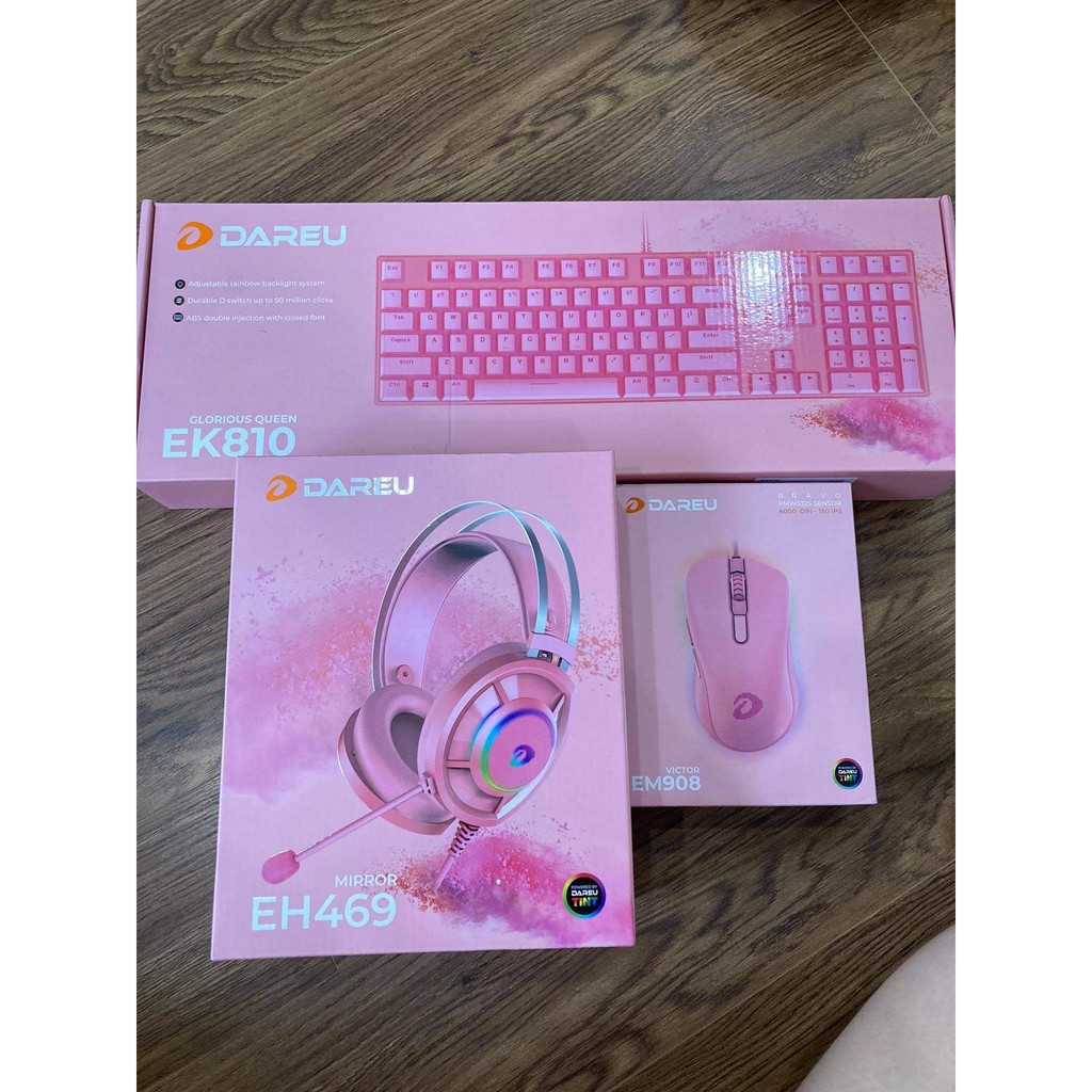 Combo Gaming Bộ Bàn Phím Dareu EK810 + Chuột Dareu EM908 + Tai Nghe Dareu EH469 + Bàn Di Dareu EPS101 Màu Hồng