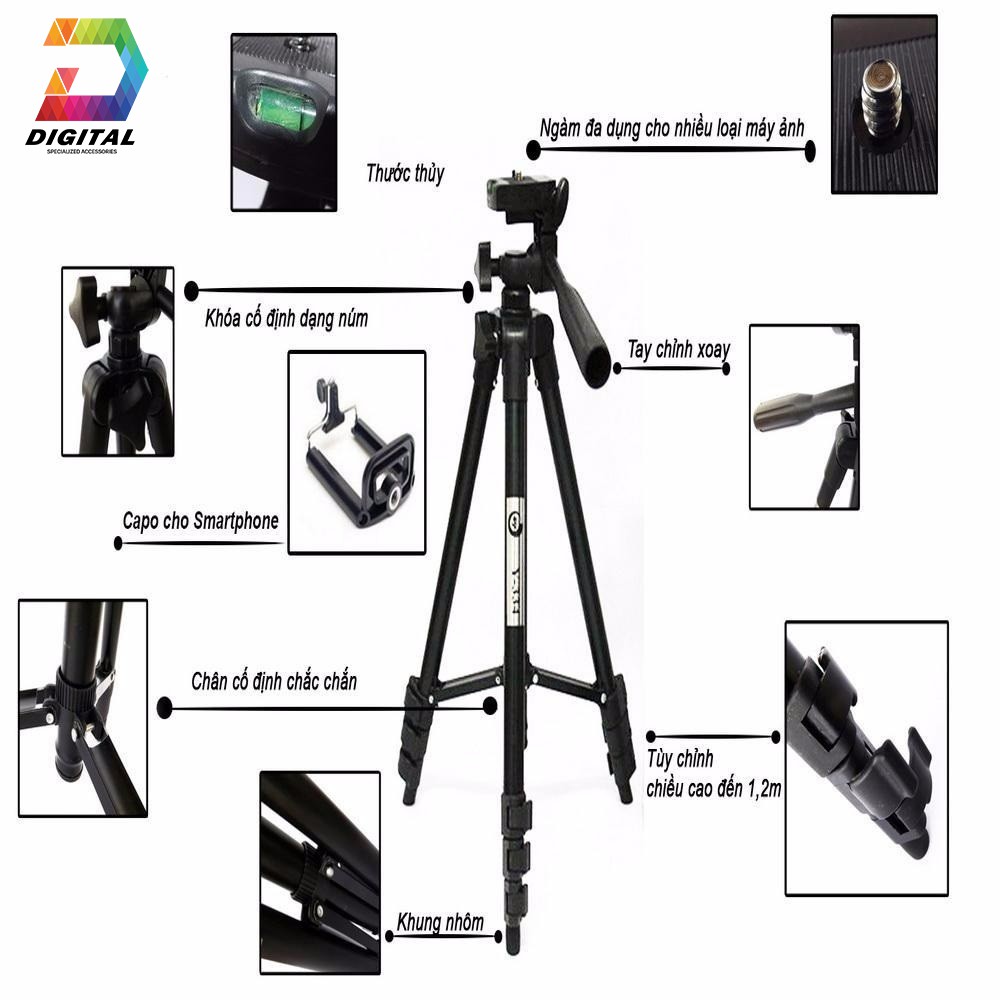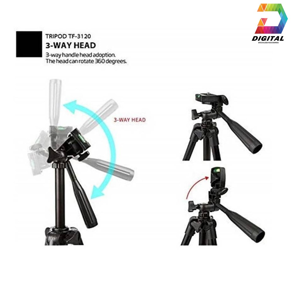 - Giá đỡ chụp hình Tripod 3120 dành cho những tín đồ nhiếp ảnh muốn có những bức ảnh đẹp và chuyên nghiệp thường không quên đầu tư chiếc chân tripod thông minh.Tripod TF 3120 thiết kế dành riêng cho những chiếc điện thoại, máy ảnh, máy quay phim gia đình với kích thước gọn nhẹ, dễ di chuyển, dễ sử dụng. Không chỉ giúp chụp ảnh dễ dàng, giảm tình trạng mờ nhòe do rung tay, TF 3120 còn đem lại cho bạn sự linh động để thoải mái sáng tạo những khung hình đẹp.