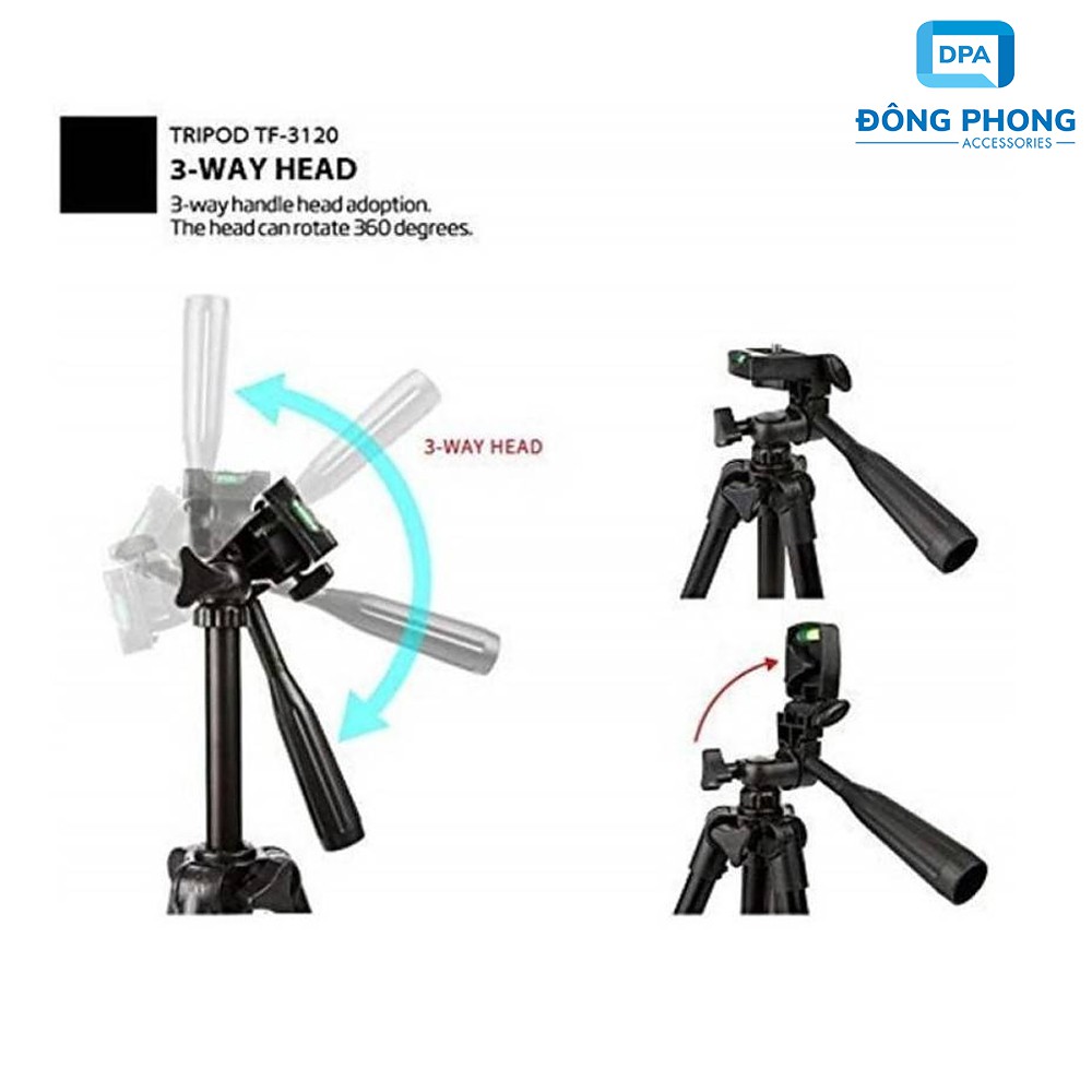 - Giá đỡ chụp hình Tripod 3120 dành cho những tín đồ nhiếp ảnh muốn có những bức ảnh đẹp và chuyên nghiệp thường không quên đầu tư chiếc chân tripod thông minh.Tripod TF 3120 thiết kế dành riêng cho những chiếc điện thoại, máy ảnh, máy quay phim gia đình với kích thước gọn nhẹ, dễ di chuyển, dễ sử dụng. Không chỉ giúp chụp ảnh dễ dàng, giảm tình trạng mờ nhòe do rung tay, TF 3120 còn đem lại cho bạn sự linh động để thoải mái sáng tạo những khung hình đẹp.
