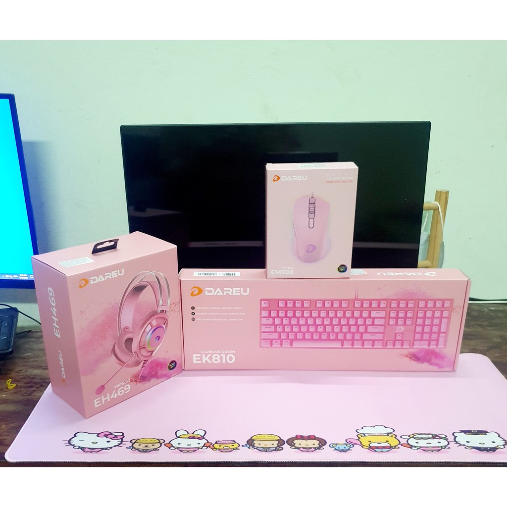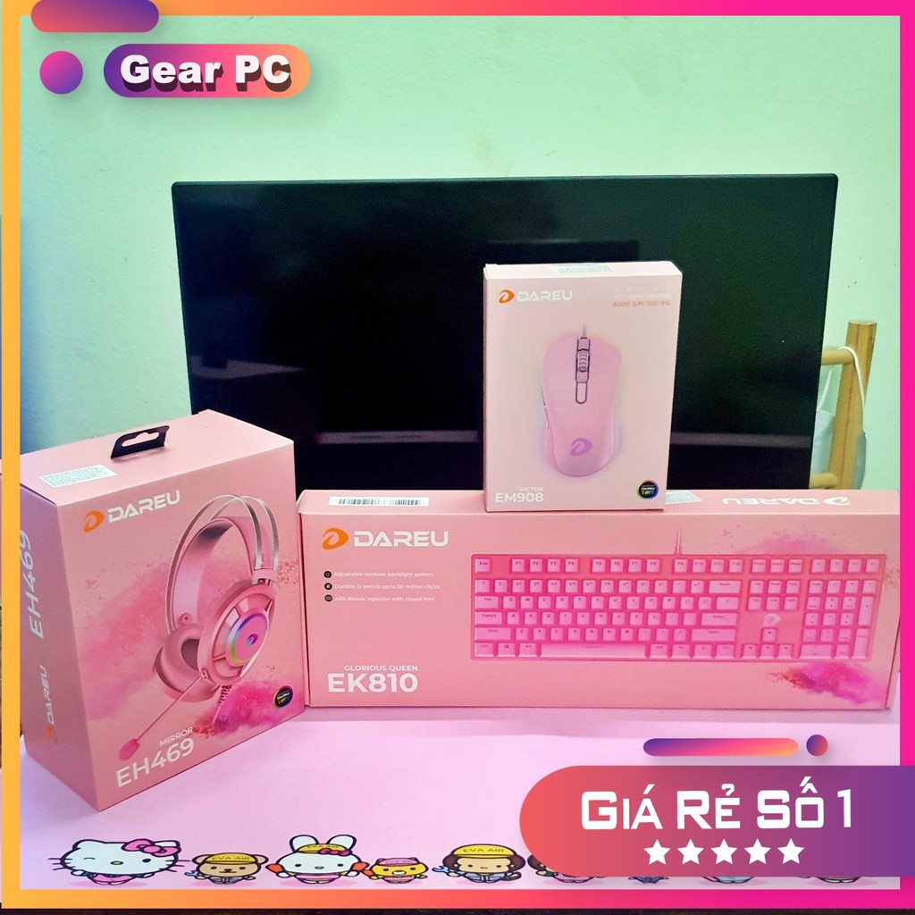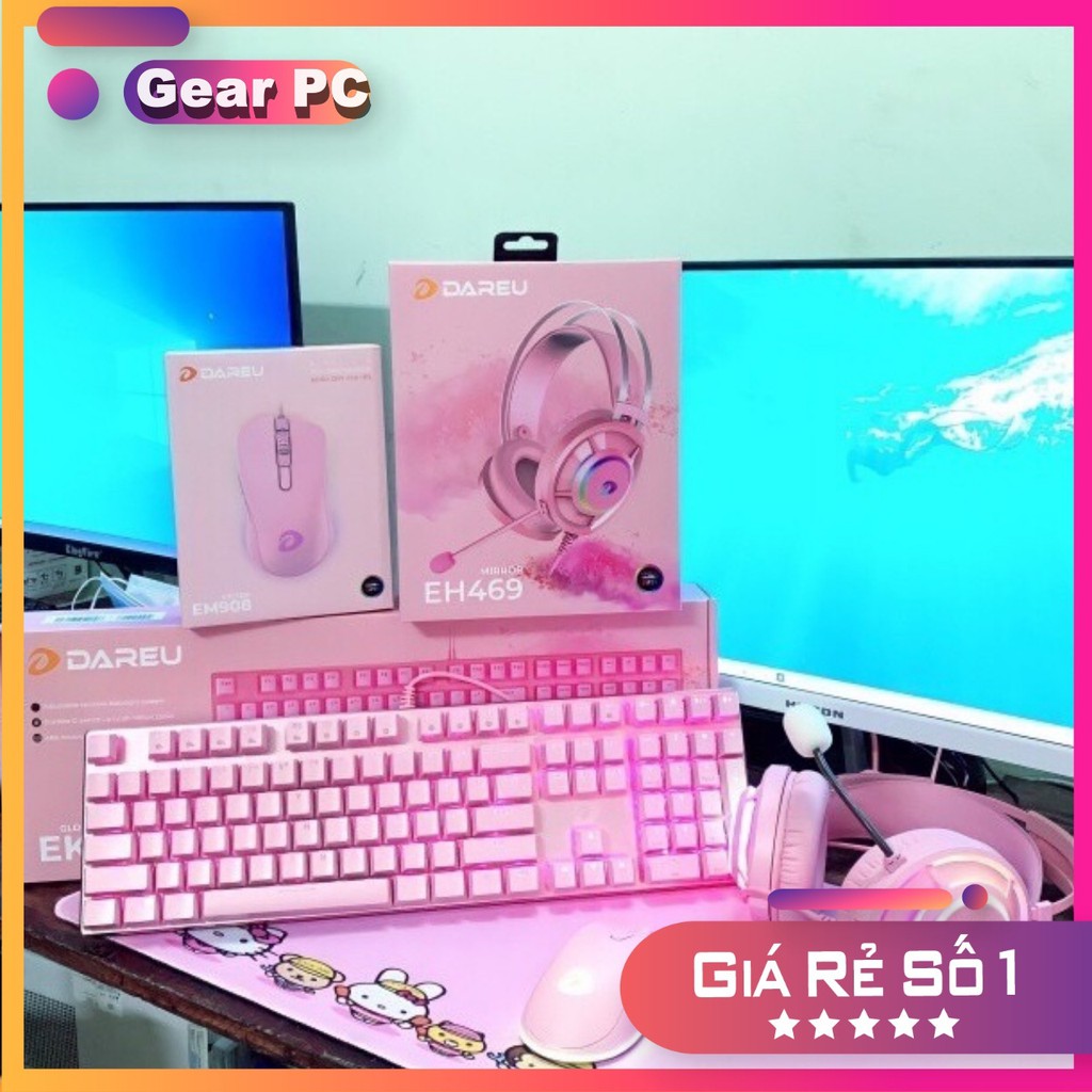 Combo gear phím chuột có dây Dareu và tai nghe hồng Chính Hãng - TẶNG KÈM BÀN DI HỒNG 30x80 - Máy Tính Báo Hồng