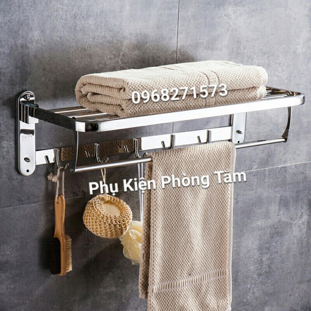 Combo giá treo khăn và Kệ chữ nhật 2 tầng Inox 304