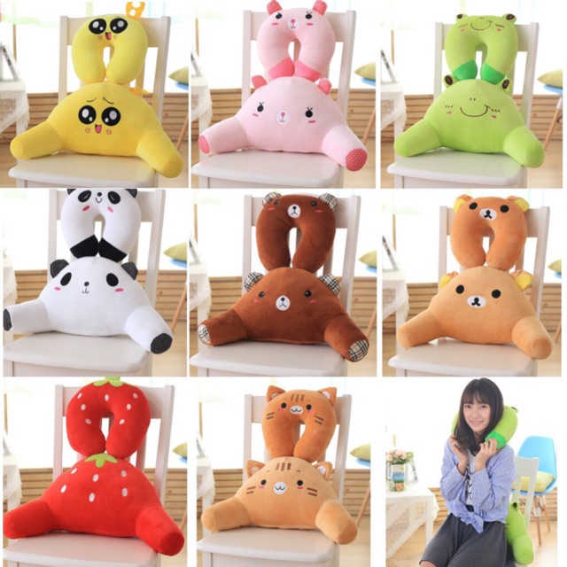 Combo gồm 2 gối : 1 gối kê cổ và 1 gối tựa lưng chống mỏi cổ và mỏi lưng khi đi tàu xe máy bay đường dài , giúp bạn có giấc ngủ ngon bởi lớp bông mềm bọc nhung êm ái .Sản phẩm được thiết kế gia công tỉ mỉ hoạ tiết hoạt hình cực dễ thương cho bạn chọn lựa như :