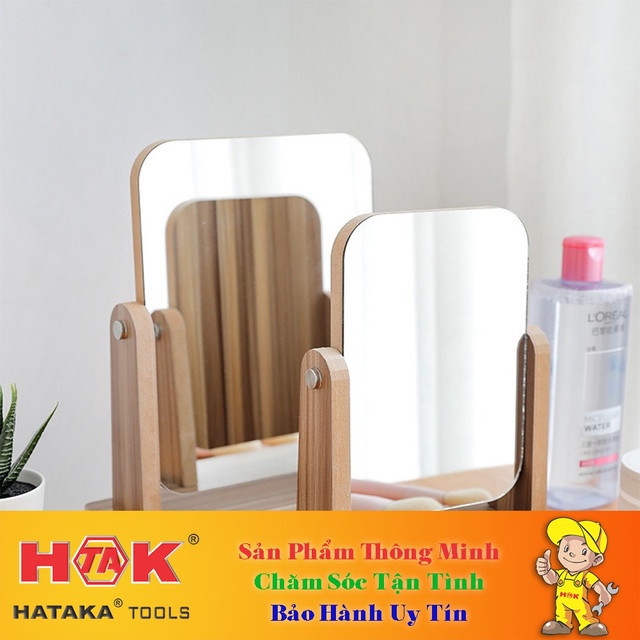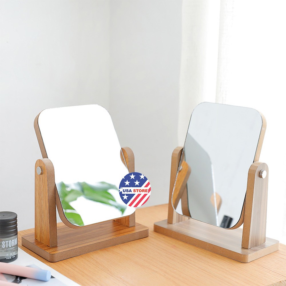 Combo Gương Để Bàn Khung Gỗ - Tấm Dày 1.2Cm - Soi Trang Điểm Trang Trí Phòng Ngủ