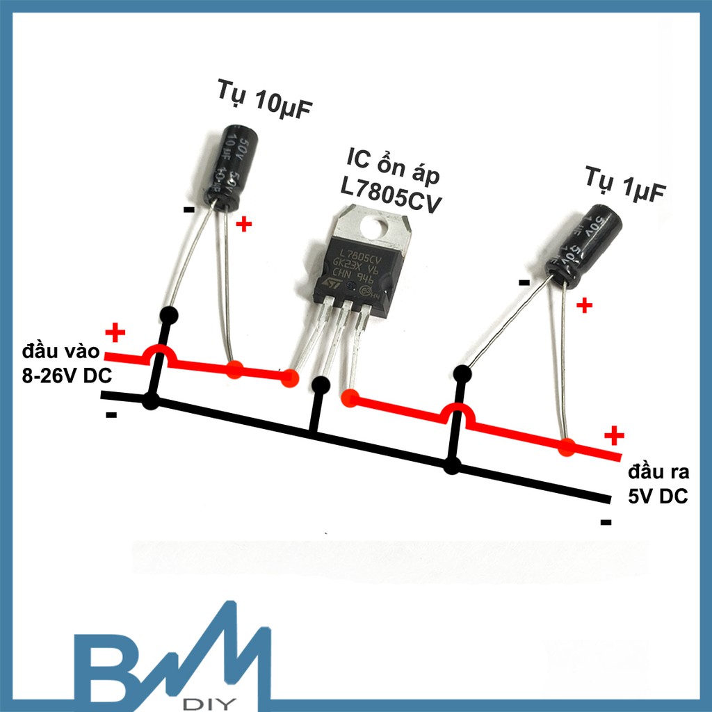 Anh em đều biết rằng khi mạch giải mã bluetooth dùng chung nguồn với mạch công suất thì sẽ bị nhiễu và loa rè. và combo này sẽ loại bỏ hoàn toàn nỗi lo đó. Combo gồm IC ổn áp 7805 và 2 tụ 10uF, 1uF sẽ làm nhiệm vụ giảm điện áp nguồn về 5V, sau đó đi qua IC cách ly B0505S, sẽ cho ra nguồn điện sạch và ổn định để cấp vào mạch giải mã bluetooth.Sơ đồ đấu dây như ảnh.