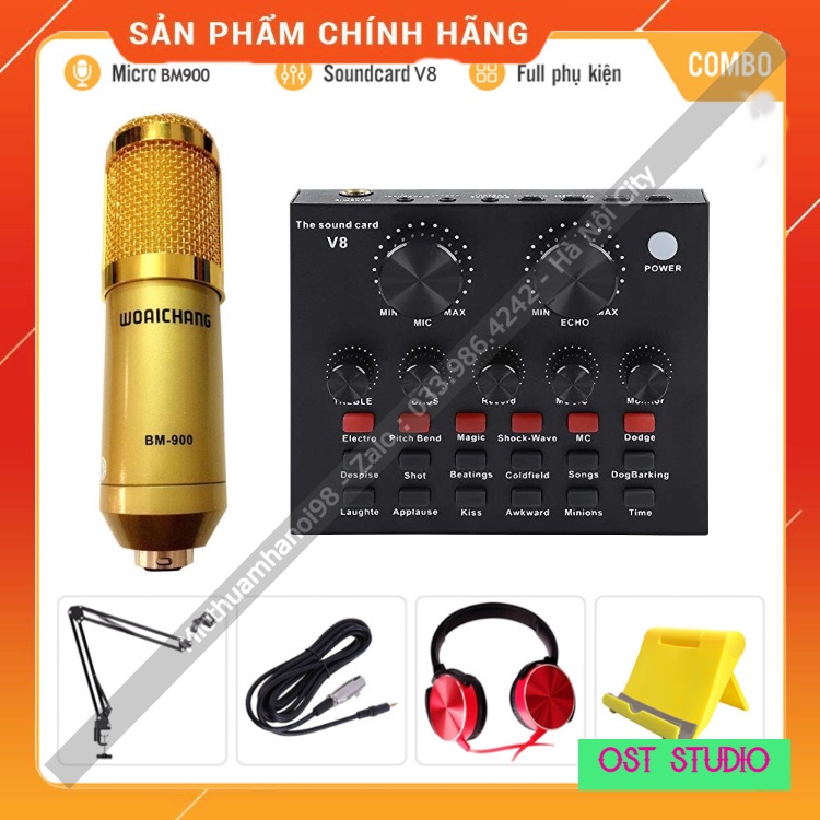 Giới thiệu Combo Hát Thu Âm Livestream Sound Card V8 Micro BM900 . Giả Giọng Người Già , Trẻ Em , Autotune . Bảo Hành 12 Tháng