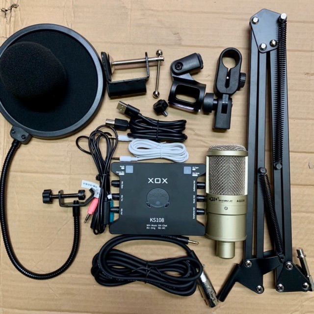 Thiết Bị Âm Thanh > Micro thu âm || Combo hát thu âm Livestream karaoke míc AQ220-Sound card xox ks108 chân+lọc+dây 3 màu bCòn hàng