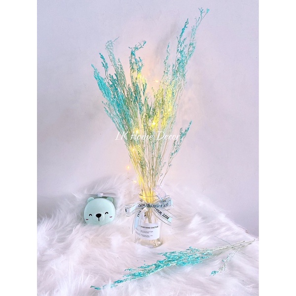 (Combo hoa và lọ có ảnh thật) Hoa khô kèm lọ tặng đèn LED, decor phòng khách,trang trí bàn làm việc, chụp ảnh sản phẩm