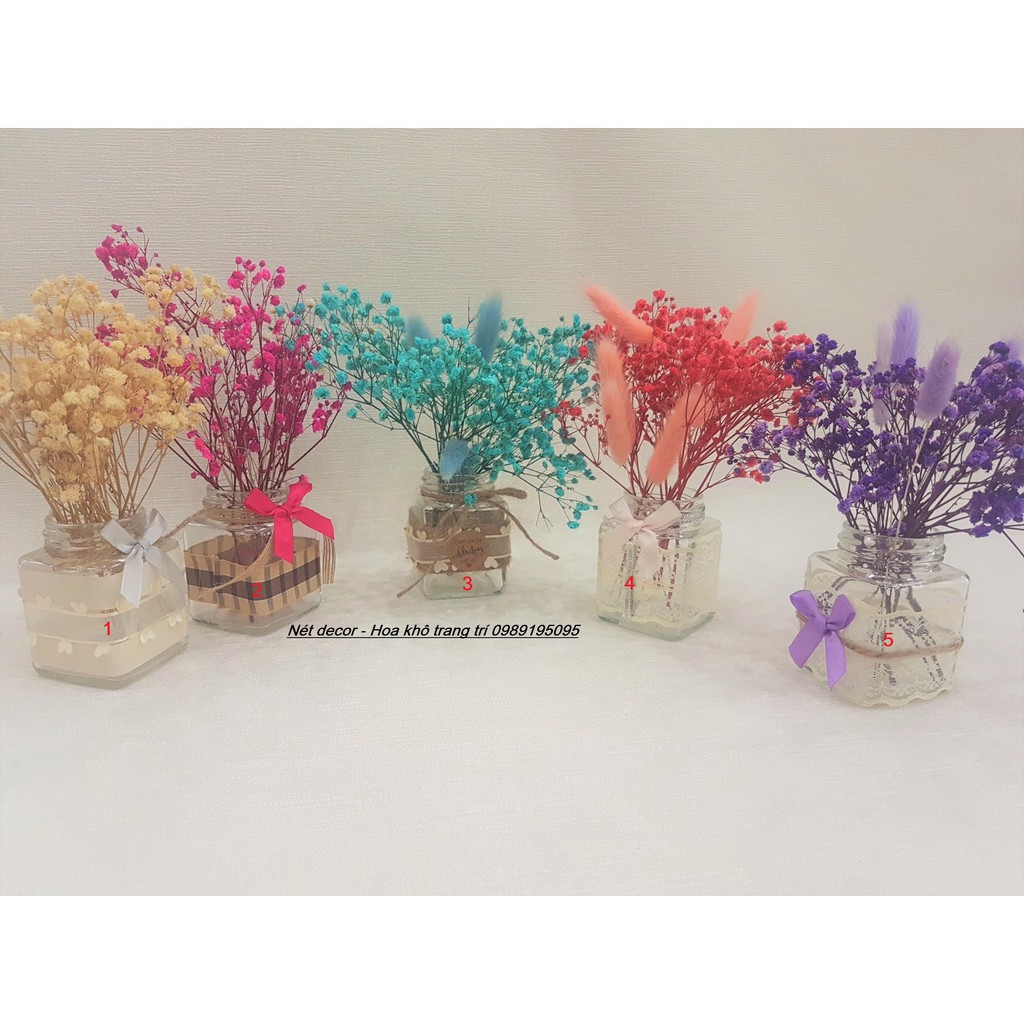 (combo hoa và lọ ) Hoa thật sấy khô mix sẵn trang trí siêu xinh