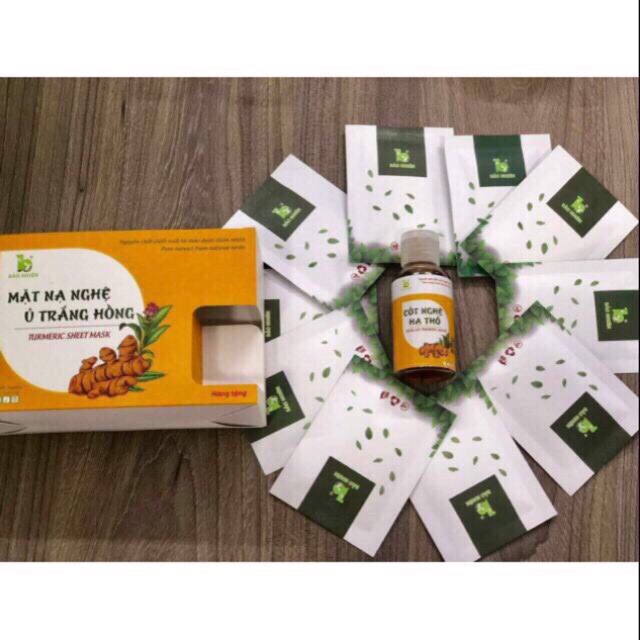 - Được chiết xuất từ nghệ vàng, hoa hồng, trần bì, đương quy và bạch phục linh, Mặt nạ nghệ Bảo Nhiên giúp làm sạch da, tảy tế bào chết, bụi bẩn, bã nhờn dưới da, bổ sung dưỡng chất chống lại các sắc tố sạm da, kháng khuẩn cho da tiêu mụn, cấp ẩm giúp làn da luôn mềm mịn, căng mướt, nhuận hồng sắc khí.