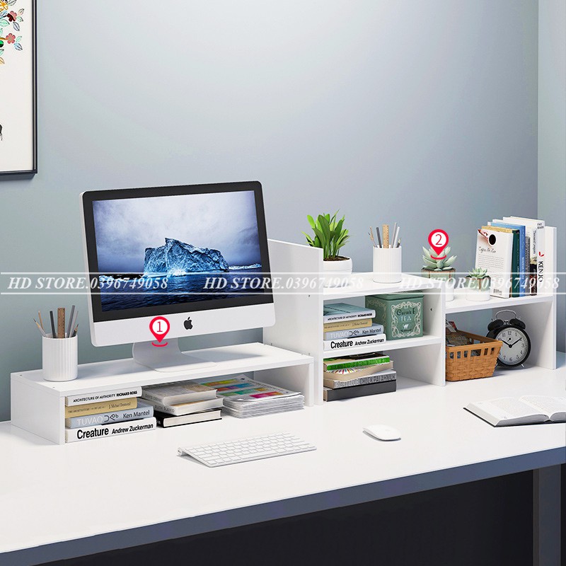 ⚡COMBO KỆ ĐA NĂNG MẪU MỚI 03 - KỆ MÁY TÍNH ĐỂ BÀN LÀM VIỆC DECOR - LẮP GHÉP MÀU TRẮNG
