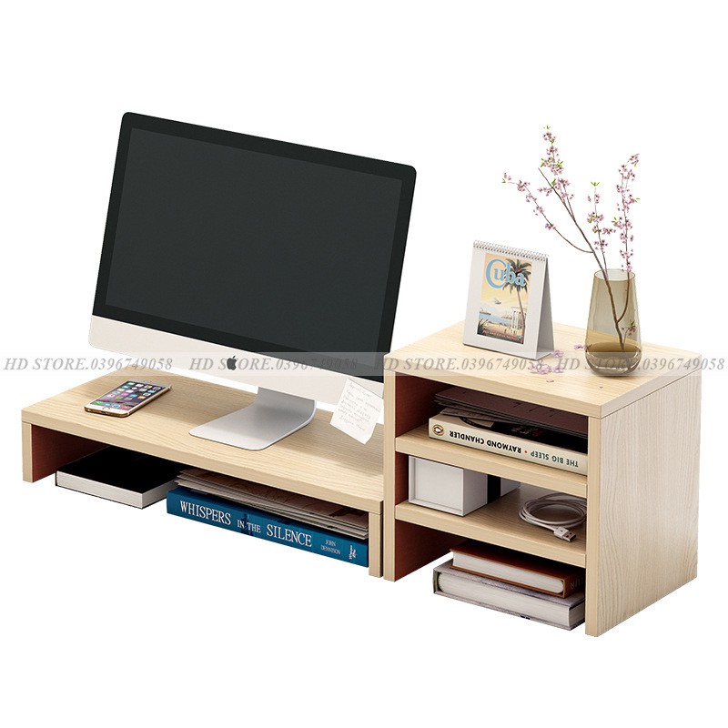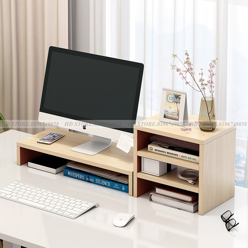 Giới thiệu COMBO ️ KỆ ĐỂ MÁY TÍNH kèm KỆ SÁCH ĐỂ BÀN LẮP GHÉP - MÀU VÂN GỖ