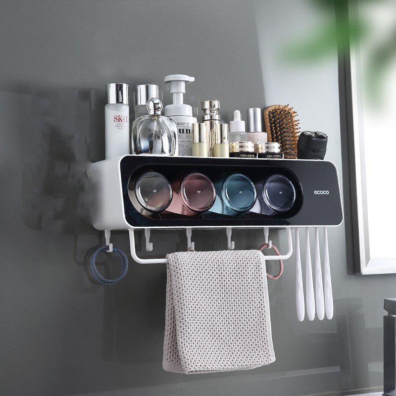 - Kệ cắm chải đánh răng, mỹ phẩm kèm giá treo khăn ecoco cao cấp không cần khoan tường mẫu mới cực hót.- Chất liệu: Nhựa ABS cao cấp chống nước, chống nước.
