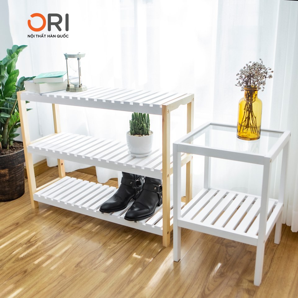 COMBO KỆ GỖ 3 TẦNG LẮP RÁP - KỆ GỖ MẶT KÍNH HÀN QUỐC - BENCH 3F - GLASS SHELF - WHITE