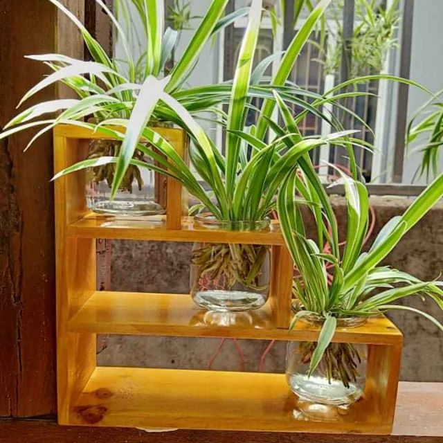 Nhà cửa & Đời sống > Làm vườn > Chậu cây || Combo Kệ gỗ trồng cây thủy sinh kiểu bậc thang tặng chậu MS224Còn hàng