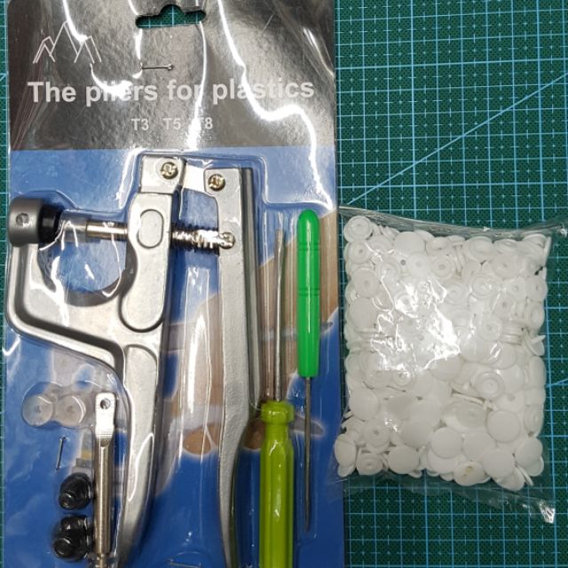 Nhà cửa & Đời sống > Dụng cụ & Thiết bị tiện ích > Dụng cụ > Kìm || Combo kềm bấm nút nhựa và bịch nút bấm nhựa màu trắngCòn hàng