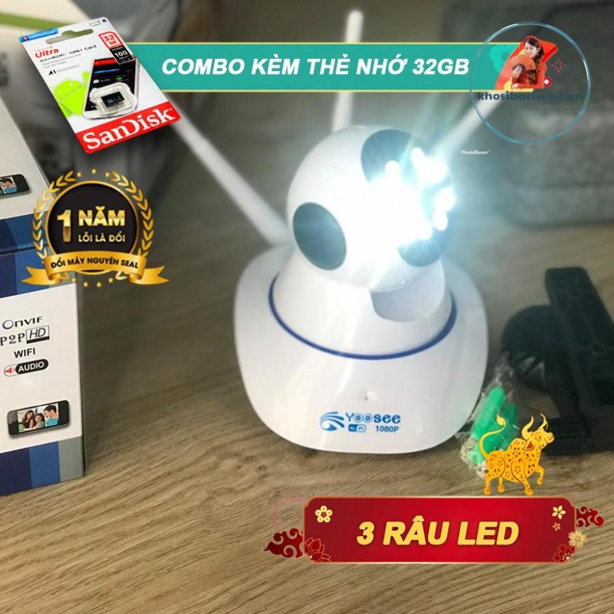 Combo Kèm Thẻ Nhớ 64GB Camera Yoosee 3 Râu Có Đèn Led, Đèn Hồng Ngoại Quay Đêm Có Màu