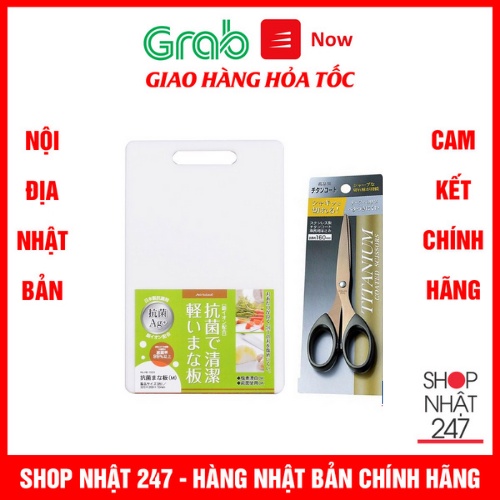 Combo Kéo nhà bếp chất liệu titan và Thớt nhựa kháng khuẩn độ dày 1cm Nội địa Nhật Bản