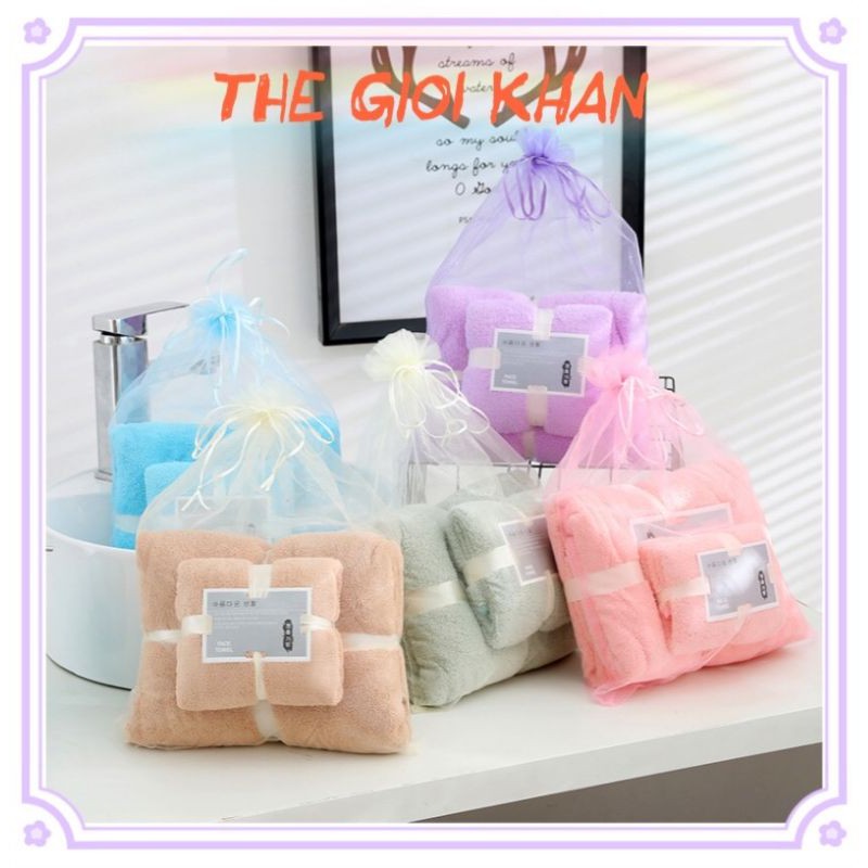 Combo khăn tắm khăn mặt mềm mịn [SIÊU RẺ] siêu thấm hút - Set khăn tắm làm quà tặng