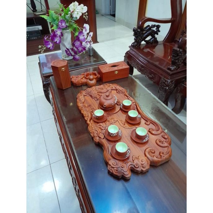Khay Trà Gỗ được chế tác thủ công nguyên khối, không chắp ghép ....là điểm nhấn mạng lại sự sang trọng, lịch sự, quý phái cho bàn trà, phòng khách của gia chủ, gia đạo.