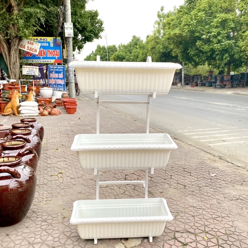 COMBO giá sắt 2 tầng, 3 tầng + chậu dài 48cm trồng hoa, trồng rau