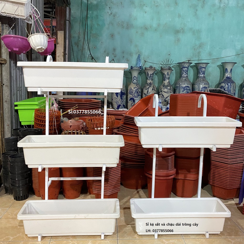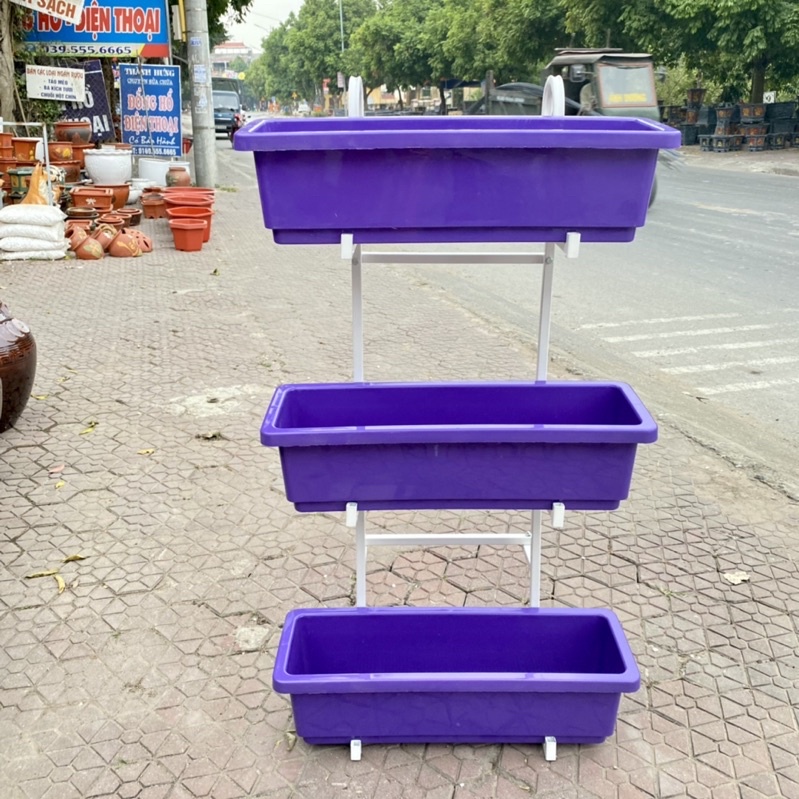 Nhà cửa & Đời sống > Làm vườn > Chậu cây || COMBO Khung sắt treo 3 tầng+ Chậu nhựa trồng rau, hoa cây cảnh ban công, máng trồng rau nhựa dài chữ nhật dài 60*20*16cmCòn hàng