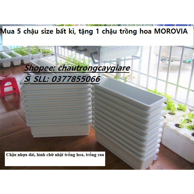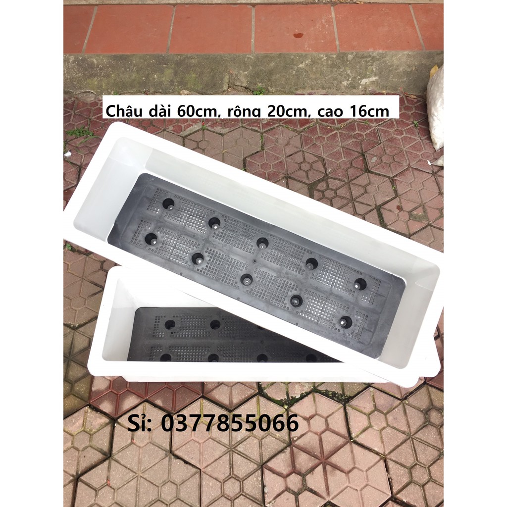 Size 2: Chậu dài 60cm, rộng 20cm, cao 16cm