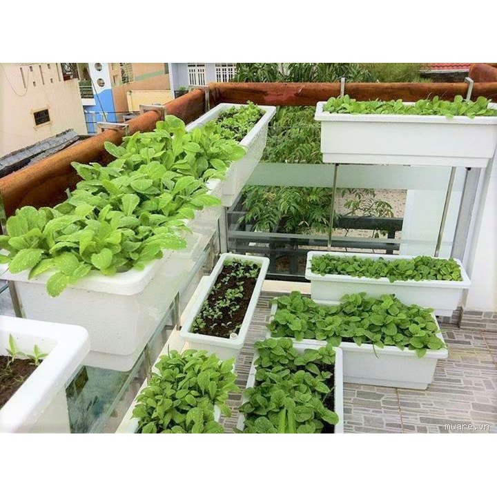 💚 Chậu nhựa trồng rau, Chậu trồng hoa cây cảnh ban công, Châu nhựa dài chữ nhật dài 60cm rộng 20cm, cao 16cm treo ban công✅ Chậu nhựa dài thông minh có lớp màng đáy thoát nước tốt và giúp đất tơi xốp, đồng thời trữ nước thừa giúp cây tự hút nước khi cần và giảm thời gian tưới cho cây.