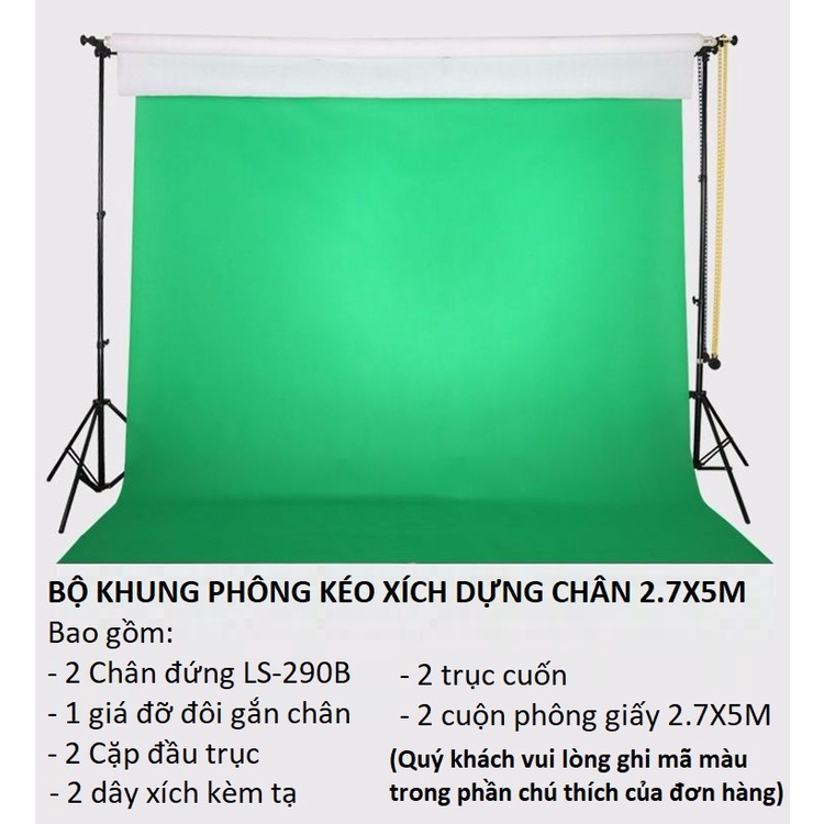 COMBO Khung Treo 2 Phông Kéo Xích + 2 Phông giấy 5M/10M, Phông Nền Studio Chuyên Nghiệp, Background Chụp Ảnh