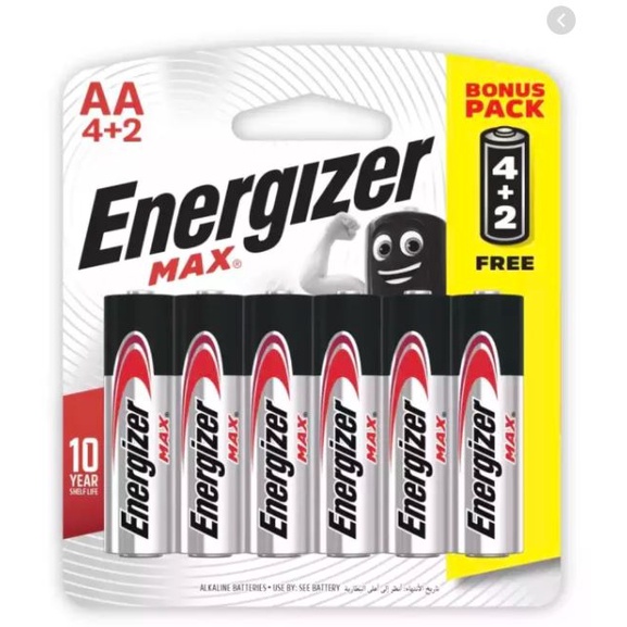 - Pin AA Energizer Max nay có tuổi thọ dài hơn tới 30% so với model cũ trong những thiết bị điện tử. Giữ năng lượng tới 10 năm ở chế độ lưu trữ để có thể dùng bất kỳ khi nào bạn cần.