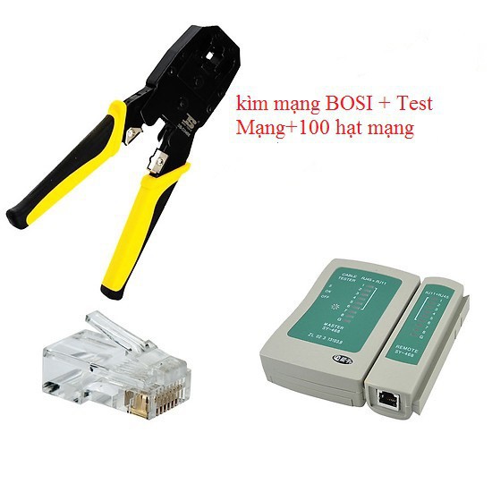 Máy tính & Laptop > Thiết Bị Mạng > Khác || Combo Kìm Bấm Mạng Bosi + Hộp Test + 100 Đầu BấmCòn hàng