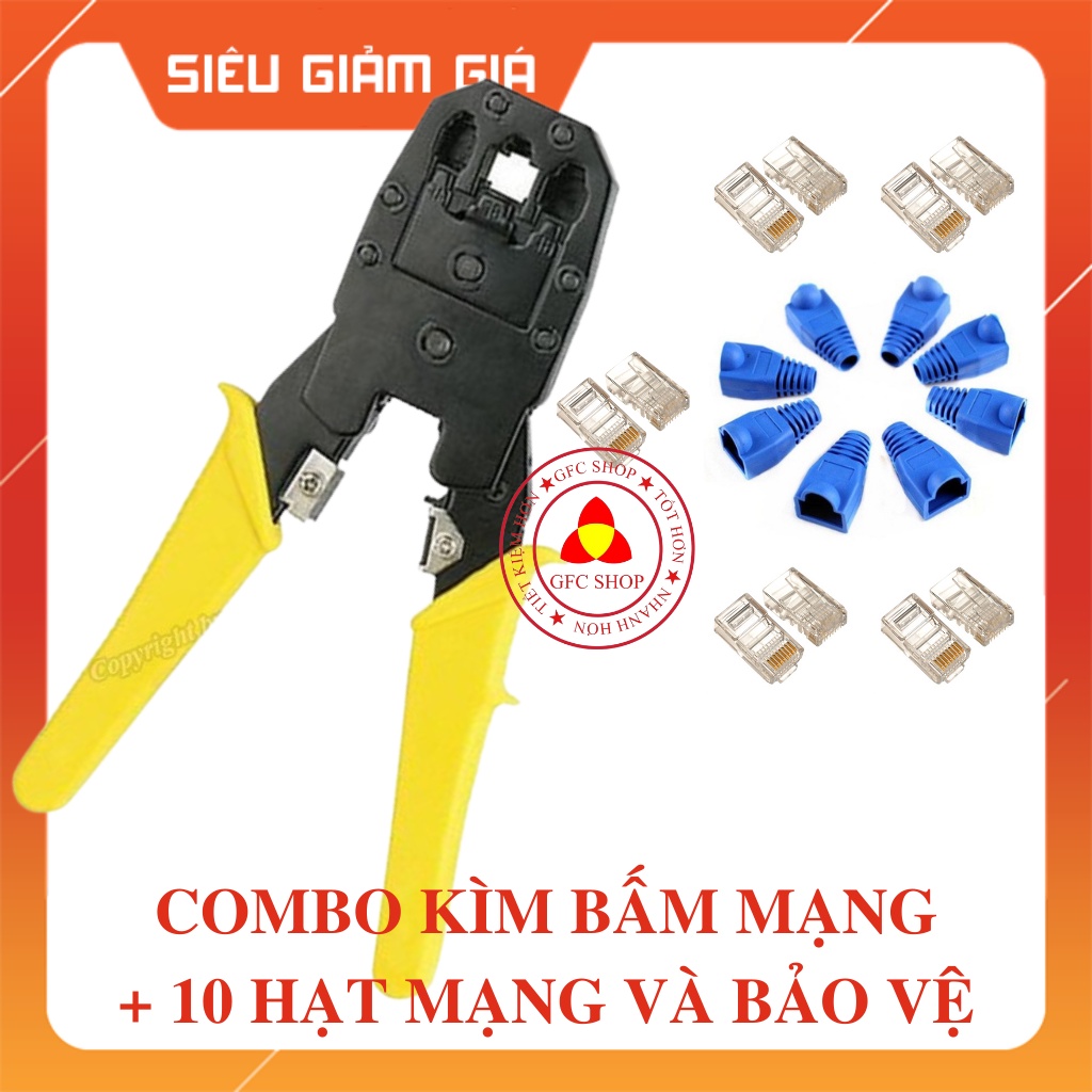 - Lưu ý: Bộ sản phẩm bao gồm 1 kìm bấm mạng và combo 10 hạt mạng RJ45 cùng với 10 đầu chụp bảo vệ hạt mạng- Mô tả sản phẩm: