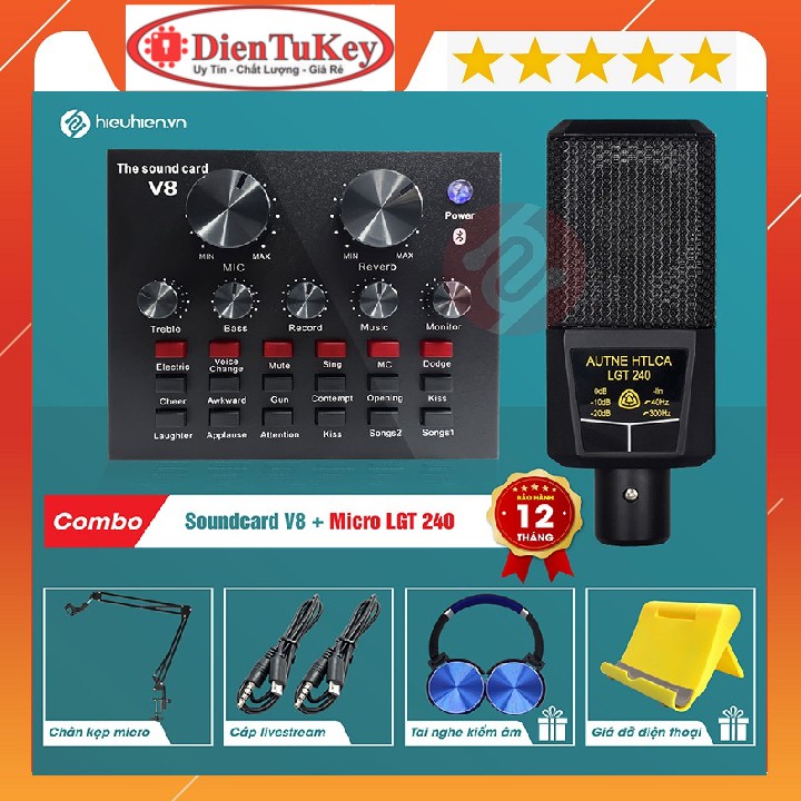 Bộ Combo livestream thu âm karaoke LGt240 Sound card V8 phụ kiện kẹp micro, màng lọc, tai nghe--------------------------------------