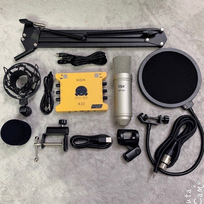 Thiết Bị Âm Thanh > Micro thu âm || Bộ Combo livestream thu âm karaoke AT100 +Sound card XOX K10 - Kèm phụ kiện kẹp micro, màng lọc, tai nghe, dây live ma1Còn hàng