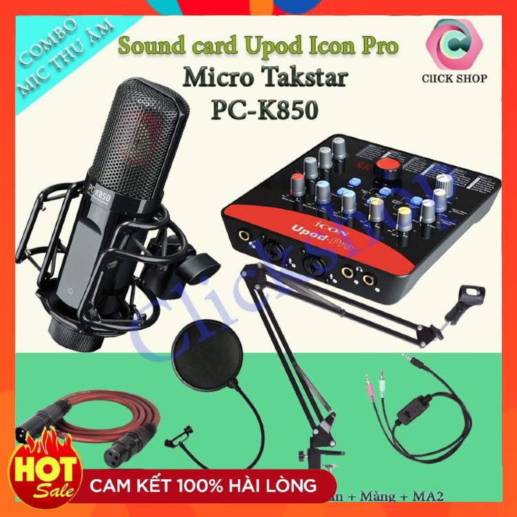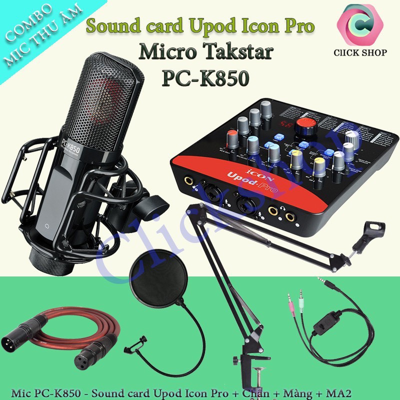 Combo Livestream Thu Âm Mic Takstar PC K850 + Sound Card Icon Upod Pro Full Phụ Kiện Bảo Hành 12 Tháng