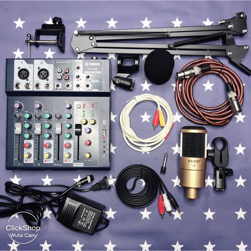 Combo livestream Thu Âm Micro SDRD 203-BÀN TRỘN MIXER F4 đầy đủ phụ kiện bảo hành 1 năm