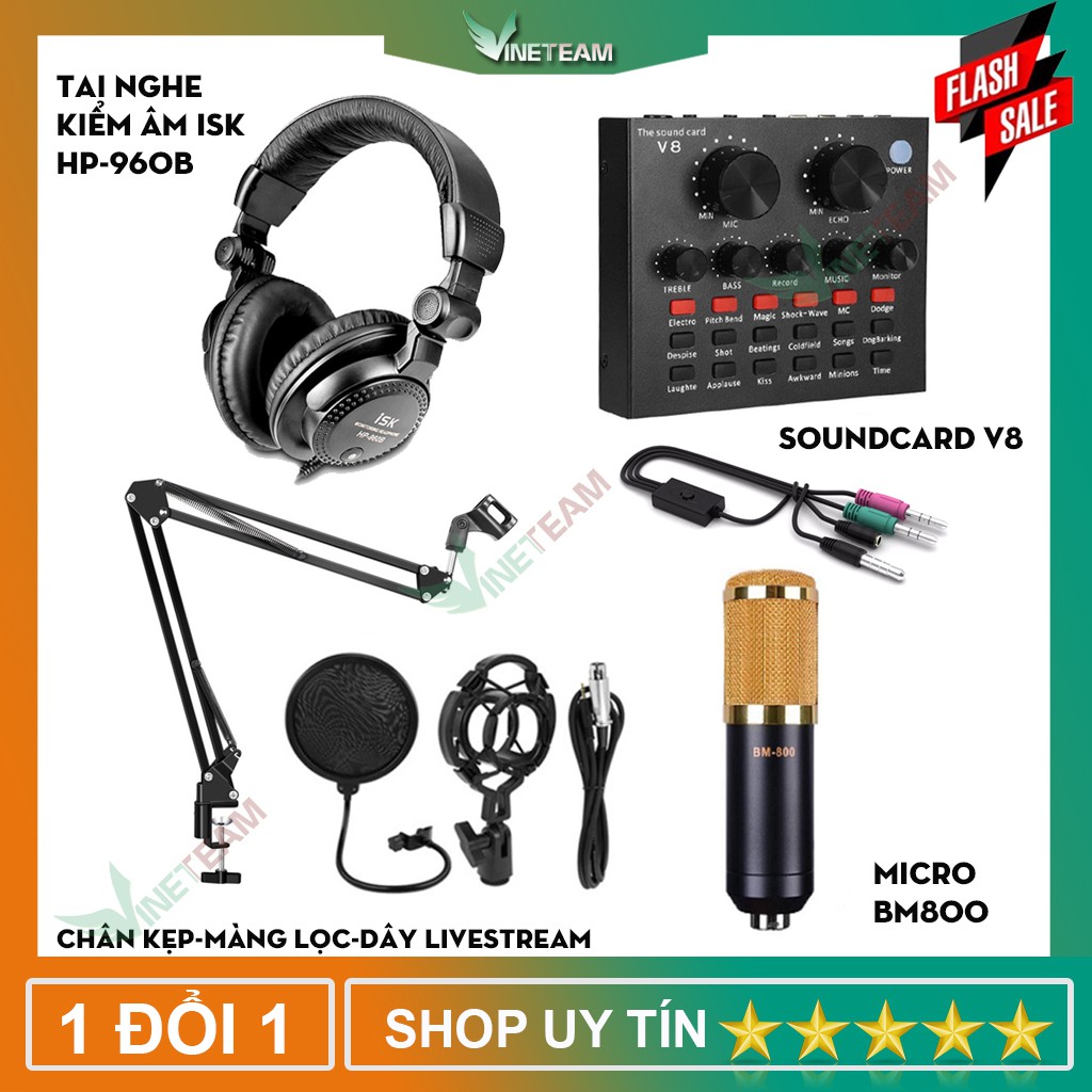 COMBO LIVETREAM THU ÂM MICRO BM800 SOUND CARD V8 ,CHÂN KẸP BÀN, MÀNG LỌC ÂM,DÂY LIVETREAM,MICRO KIỂM ÂM ISK HP960B